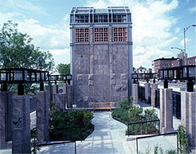 Battery Park City up the west side of Manhattan houses the ventilation shafts for the PATH trains. The design is based on